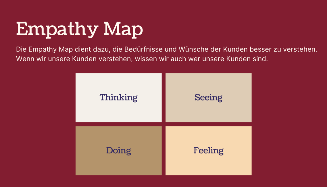 All das beeinflusst ihre Entscheidungen und ihr Kaufverhalten. Dazu entwerfen wir die Empathy Map.